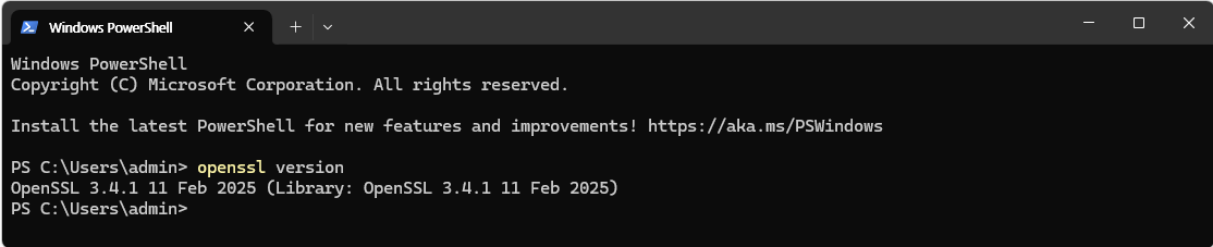 PS C:\Users\admin> openssl version