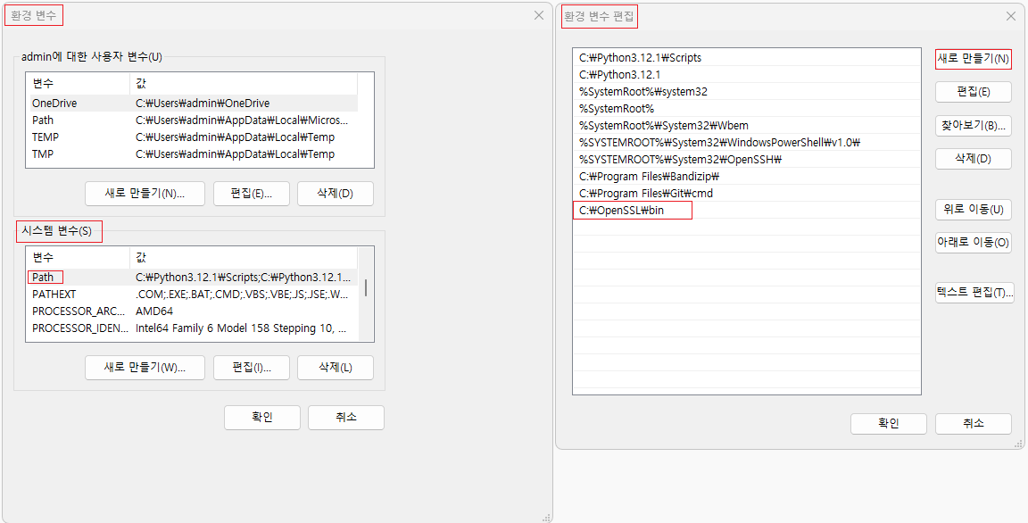 - 환경 변수 추가: C:\OpenSSL\bin